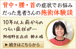 当院ではそういった理由から、短時間で患者様のお身体に負担をかけず、多くの方が効果を実感した院長の確かな技術で施術をさせていただきます。